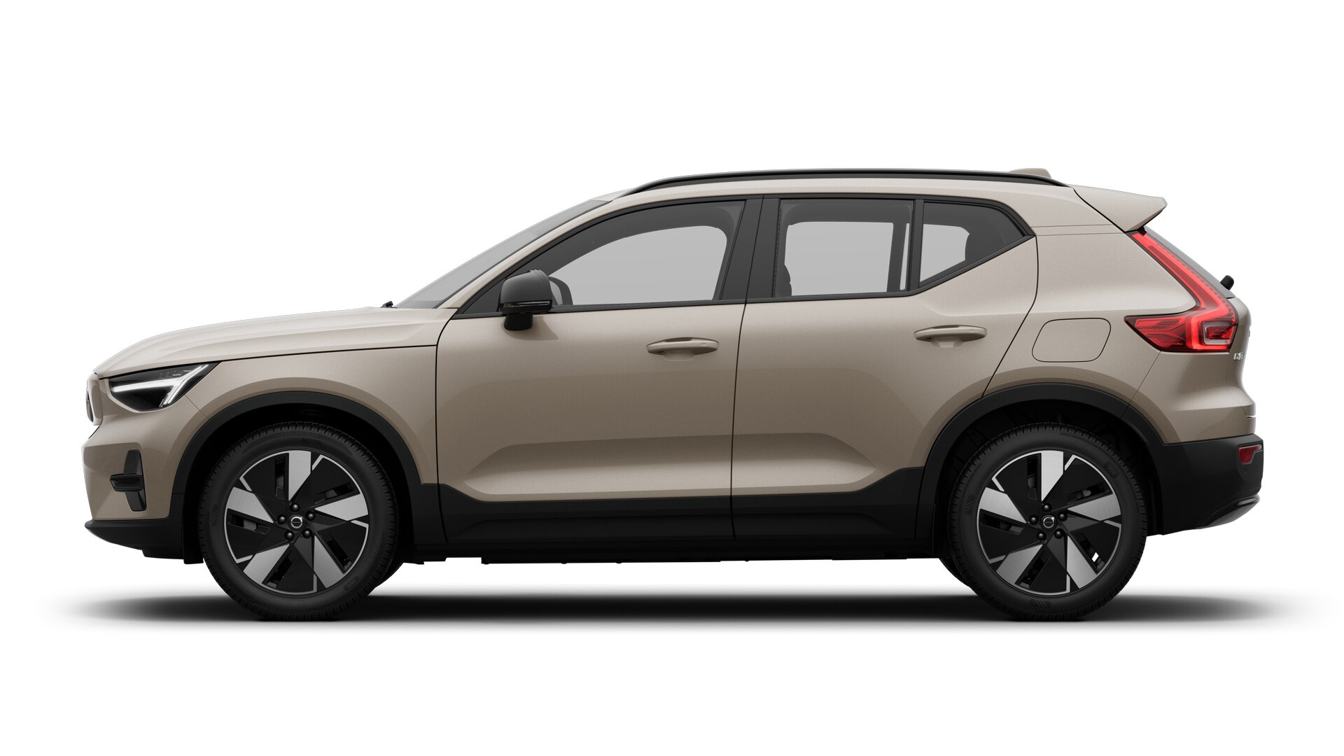 Langbogar, Útispeglar í svörtum lit, „Glossy Black“ stuðarahlífar framan og aftan, LED aðalljós, Upphitanlegt Volvo merki í grilli, 19" 5-Spoke Black Diamond-cut álfelgur.5 ára ábyrgð á Volvo bíl og 8 ára ábyrgð á drifrafhlöðu