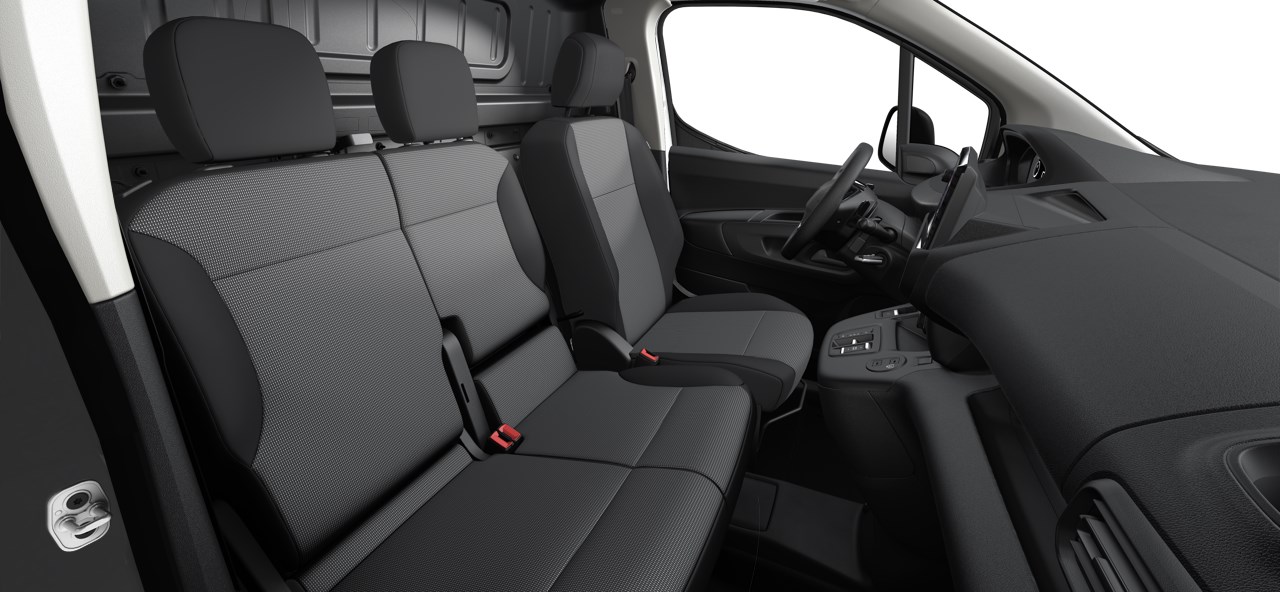 2 sæti að framan (3 sæti fáanlegt sem aukabúnaður), upphitanlegt bílstjórasæti, heilt þil milli hleðslu- og farþegarýmis, hilla fyrir ofan ökumann og farþega, gúmmímottur í gólf ökumanns og farþegarýmis, festilykkjur í hleðslurými (6 stk), leðurklætt og upphitanlegt stýrishjól, hiti í framrúðu undir rúðuþurrkum.Stjórntæki