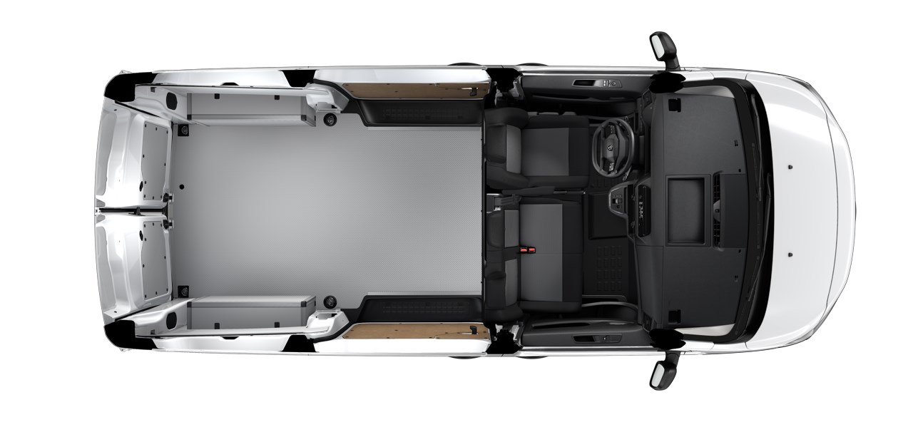 Rennihurð á vinstri hlið með lokunarvörn (staðalbúnaður á hægri). Olíumiðstöð með tímastilli og fjarstýringu (5kW). Krossviður í gólfi hleðslurýmis, stamur. Hliðar og hjólaskálar klæddar.Tæknipakki (bakkmyndavél 180° Visiopark, 10“ margmiðlunarskjár (IVI Mid), 10“ mælaborð í lit, Apple CarPlay og Android Auto).Staðalbúnaður í þessum bíl