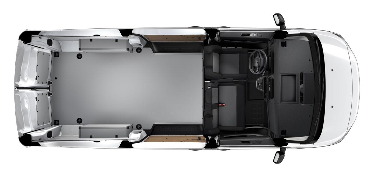 Rennihurð á vinstri hlið með lokunarvörn (staðalbúnaður á hægri). Olíumiðstöð með tímastilli og fjarstýringu (5kW). Krossviður í gólfi hleðslurýmis, stamur. Hliðar og hjólaskálar klæddar. Tæknipakki (bakkmyndavél 180° Visiopark, 10“ margmiðlunarskjár (IVI Mid), 10“ mælaborð í lit, Apple CarPlay og Android Auto). 17" álfelgur 215/60 R17.Staðalbúnaður í þessum bíl