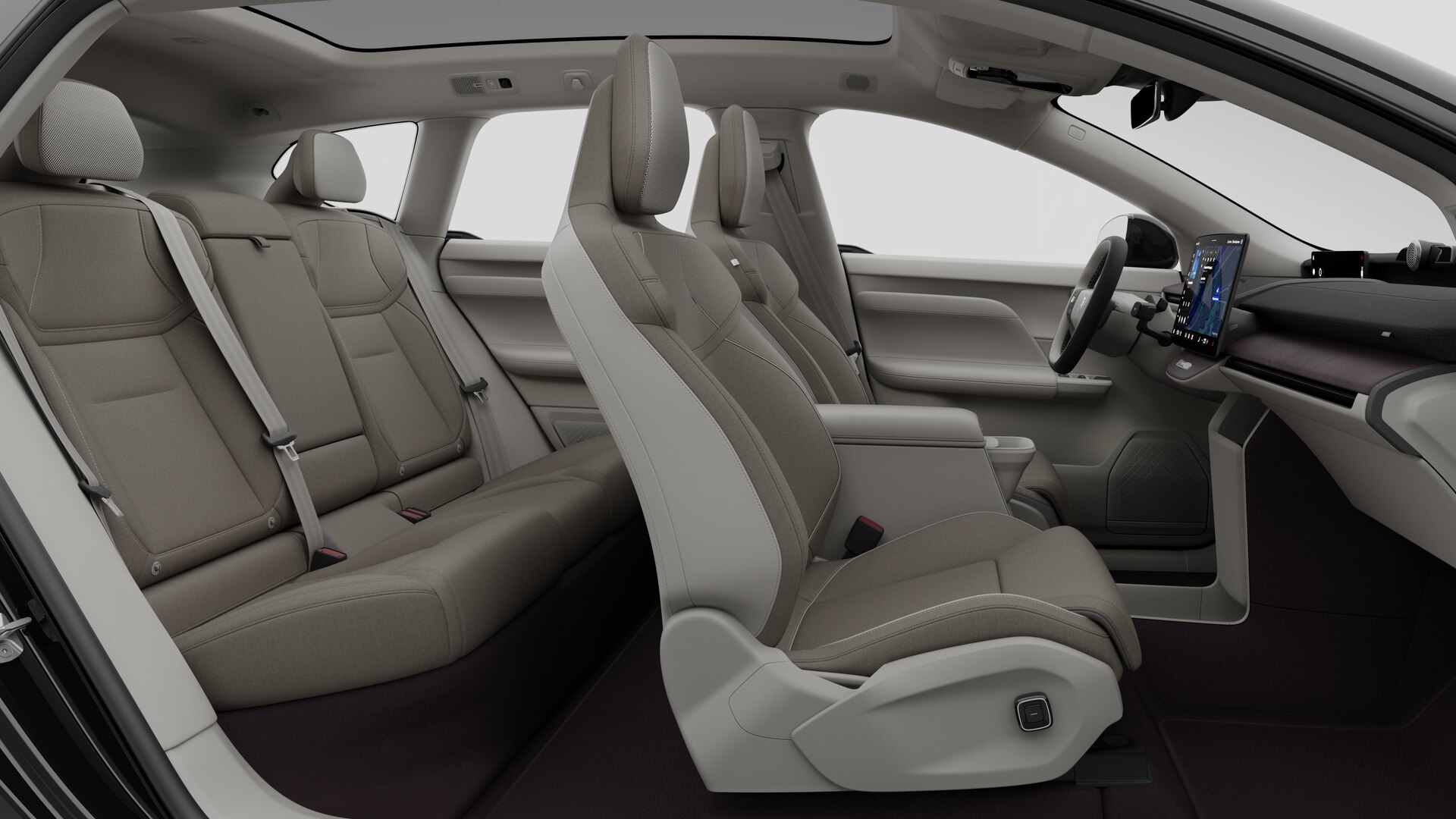 11,4“ skjár í mælaborði, 15“ láréttur miðjuskjár, Google Gemini, Google Maps og Google Play Stor, Bower & Wilkins Premium Sound hljómkerfi, Bluetooth GSM símkerfi, USB tengi, Volvo app, Forhitari fjarstýrður með appi eða á skjá, Varmadæla, Sími sem lykill, Þráðlaust Apple CarPlay og Android Auto.Öryggi