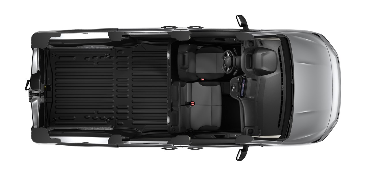2 sæti að framan, upphitanlegt bílstjórasæti, þil milli hleðslu- og farþegarýmis, hilla fyrir ofan ökumann og farþega, gúmmímottur í gólfi ökumanns og farþegarýmis, festilykkjur í hleðslurými (6 stk), leðurklætt og upphitanlegt stýrishjól.Stjórntæki
