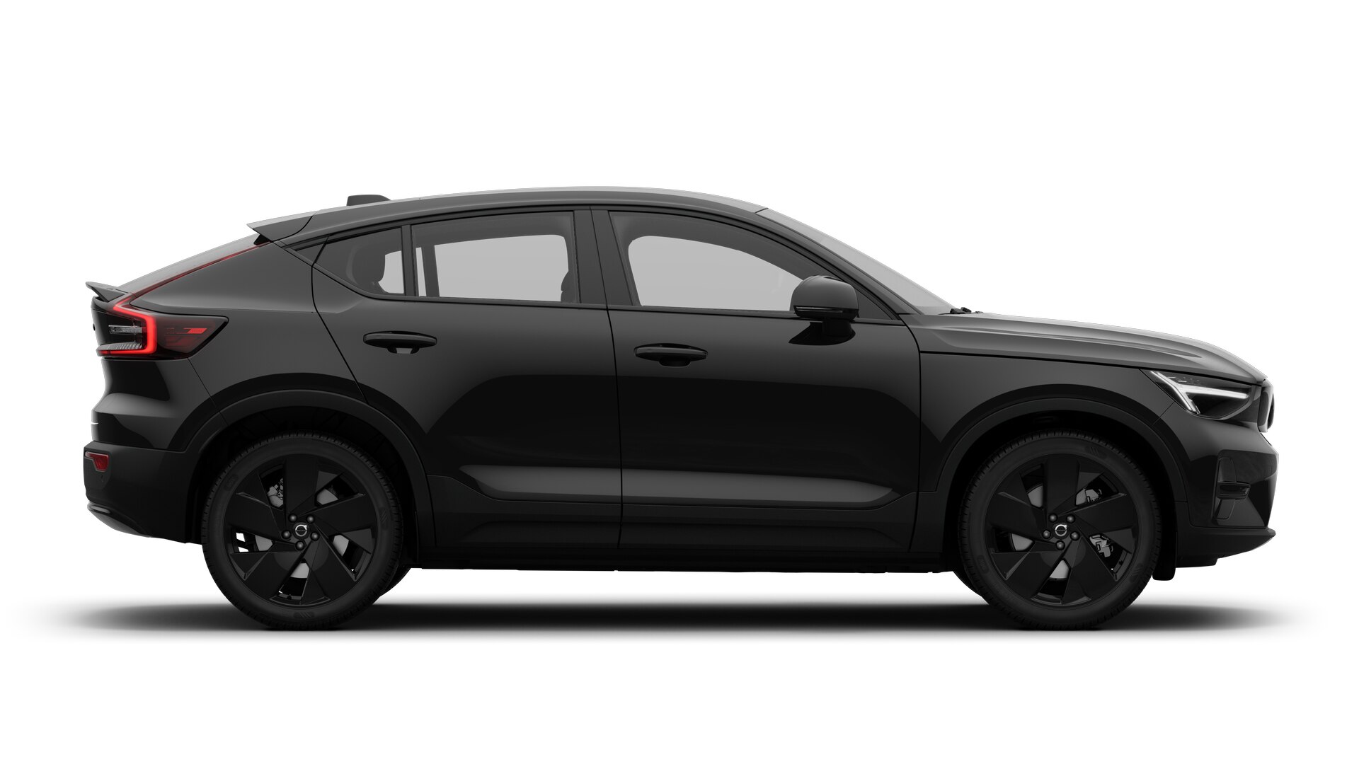 LED aðalljós, Panorama glerþak, Útispeglar í svörtum lit „Glossy Black“ stuðarahlífar framan og aftan, Upphitanlegt Volvo merki í grilli, 19" 5-Spoke Black Diamond-cut álfelgur.5 ára ábyrgð á Volvo bíl og 8 ára ábyrgð á drifrafhlöðu