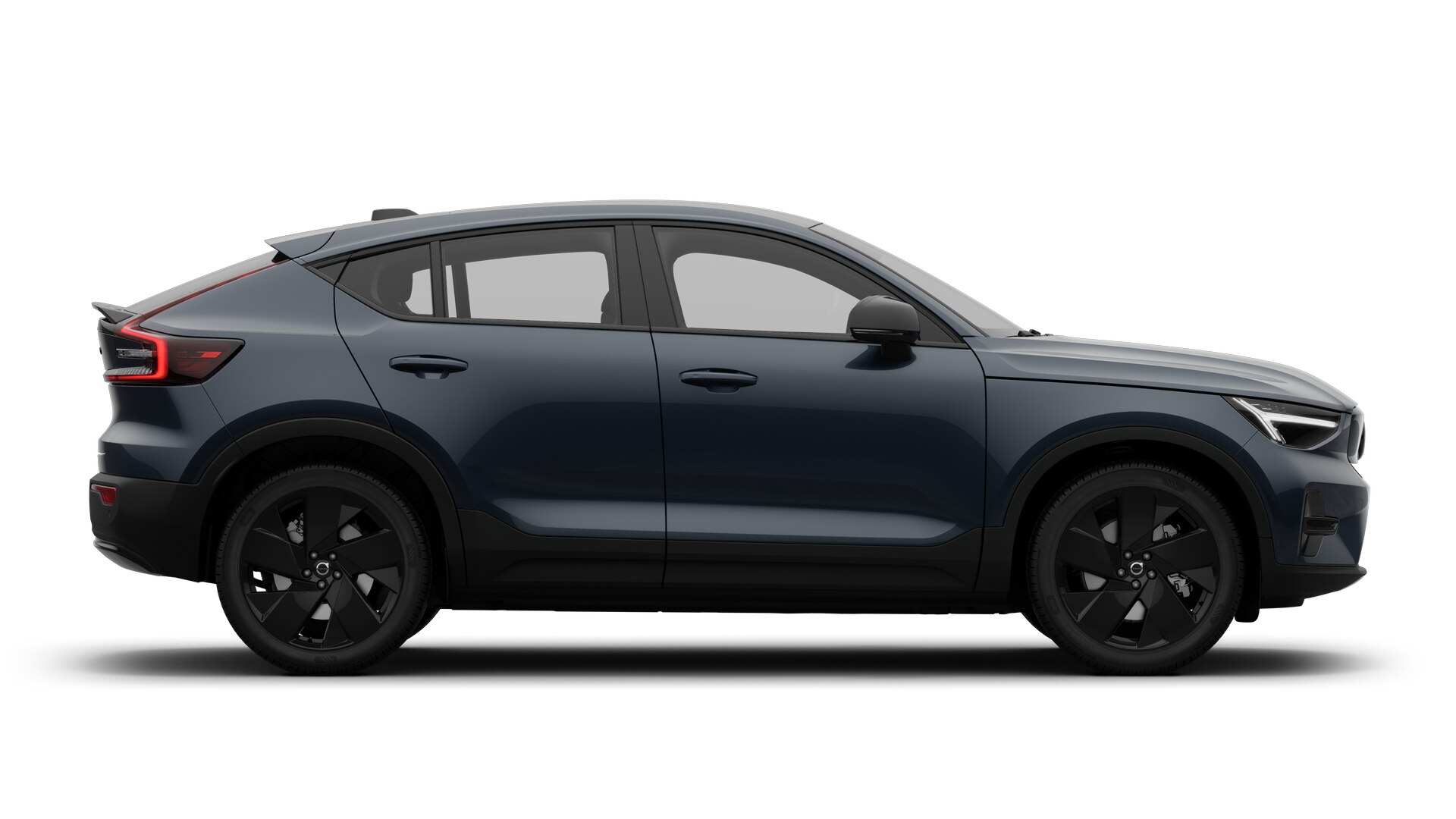 LED aðalljós, Panorama glerþak, Útispeglar í svörtum lit „Glossy Black“ stuðarahlífar framan og aftan, Upphitanlegt Volvo merki í grilli, 19" 5-Spoke Black Diamond-cut álfelgur.5 ára ábyrgð á Volvo bíl og 8 ára ábyrgð á drifrafhlöðu