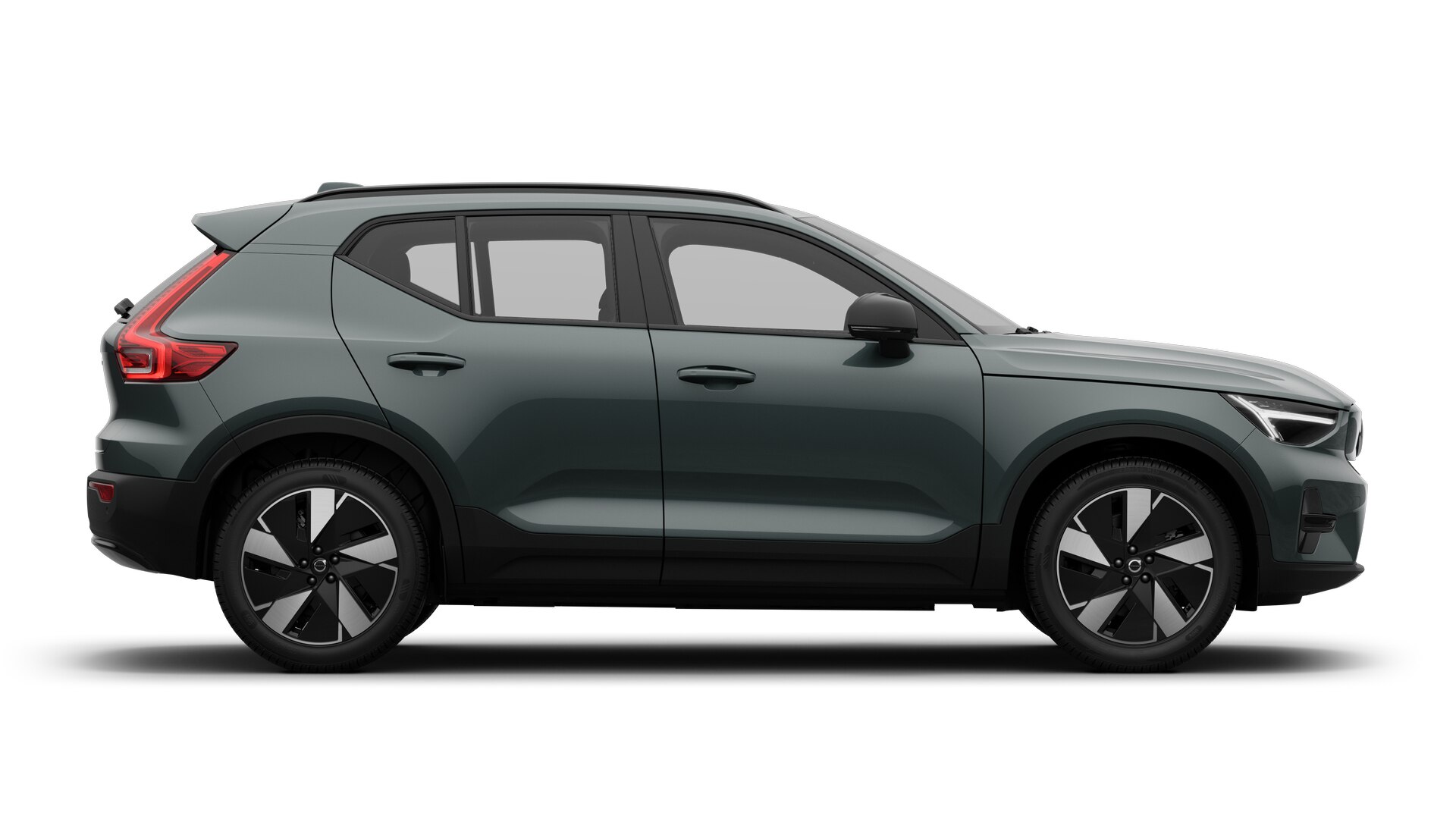 Langbogar, Útispeglar í svörtum lit, „Glossy Black“ stuðarahlífar framan og aftan, LED aðalljós, Upphitanlegt Volvo merki í grilli, 19" 5-Spoke Black Diamond-cut álfelgur.5 ára ábyrgð á Volvo bíl og 8 ára ábyrgð á drifrafhlöðu