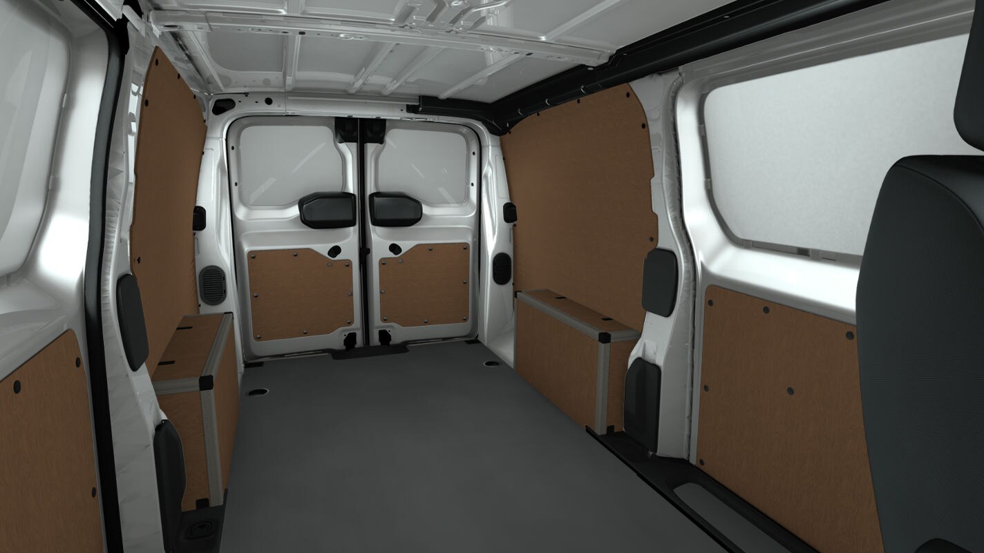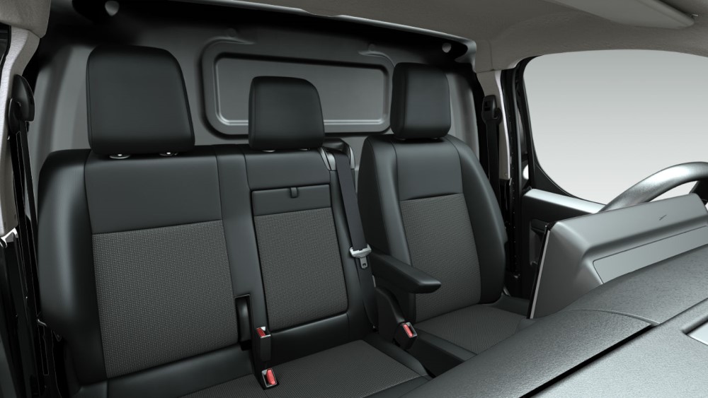 Rennihurð á vinstri hlið með lokunarvörn (staðalbúnaður á hægri), krossviður í hleðslurými, gólf, hliðar og hjólaskálar. Tæknipakki (bakkmyndavél 180° Visiopark, 10“ margmiðlunarskjár (IVI Mid), 10“ mælaborð í lit, Apple CarPlay og Android Auto)Staðalbúnaður í þessum bíl