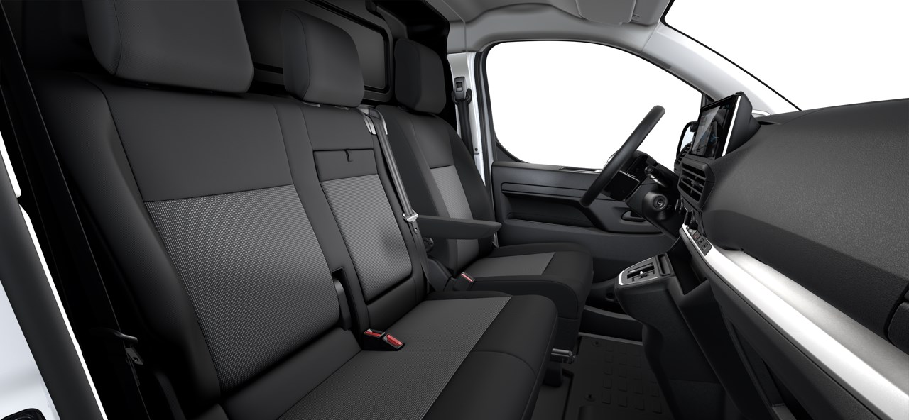 3ja sæta, ökumannssæti með armpúða, heilt þil milli hleðslu- og farþegarýmis, Moduwork – fellanlegt sæti og lúga á þili til að flytja lengri hluti, upphitanlegt framsæti, upphitanlegt leðurklætt stýri, LED lýsing í hleðslurými.Stjórntæki