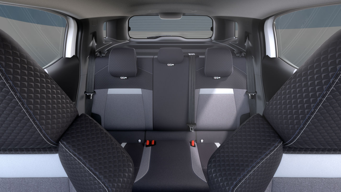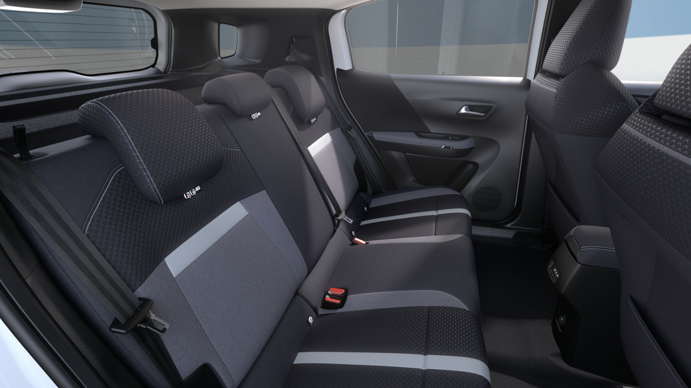 GS tauáklæði á sætum, armpúði á milli framsæta með geymsluhólfi, aftursæti með niðurfellanlegu baki (60:40), skyggðar rúður að aftan, rafdrifnar rúður að framan og aftan, þráðlaus símahleðslaStjórntæki
