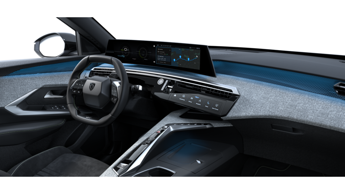 Alcantara áklæði á sætum, upphitanleg frams, sjálfvirk dimming á baksýnisspegli, Isofix og Top Tether festingar í aftursætum (ekki miðju). Peugeot i-Toggles skjár með 10 sérsníðanlegum sýndarhnöppum, stillanleg hæð á gólfi farangursrými, upphitanlegt stýri með götuðu leðri, aftursæti með niðurfellanlegu baki, ökumanns- og farþegasæti með handvirkri hæðarstillingu, fjölstillanlegt framsæti, upphitanleg aftursæti.Stjórntæki