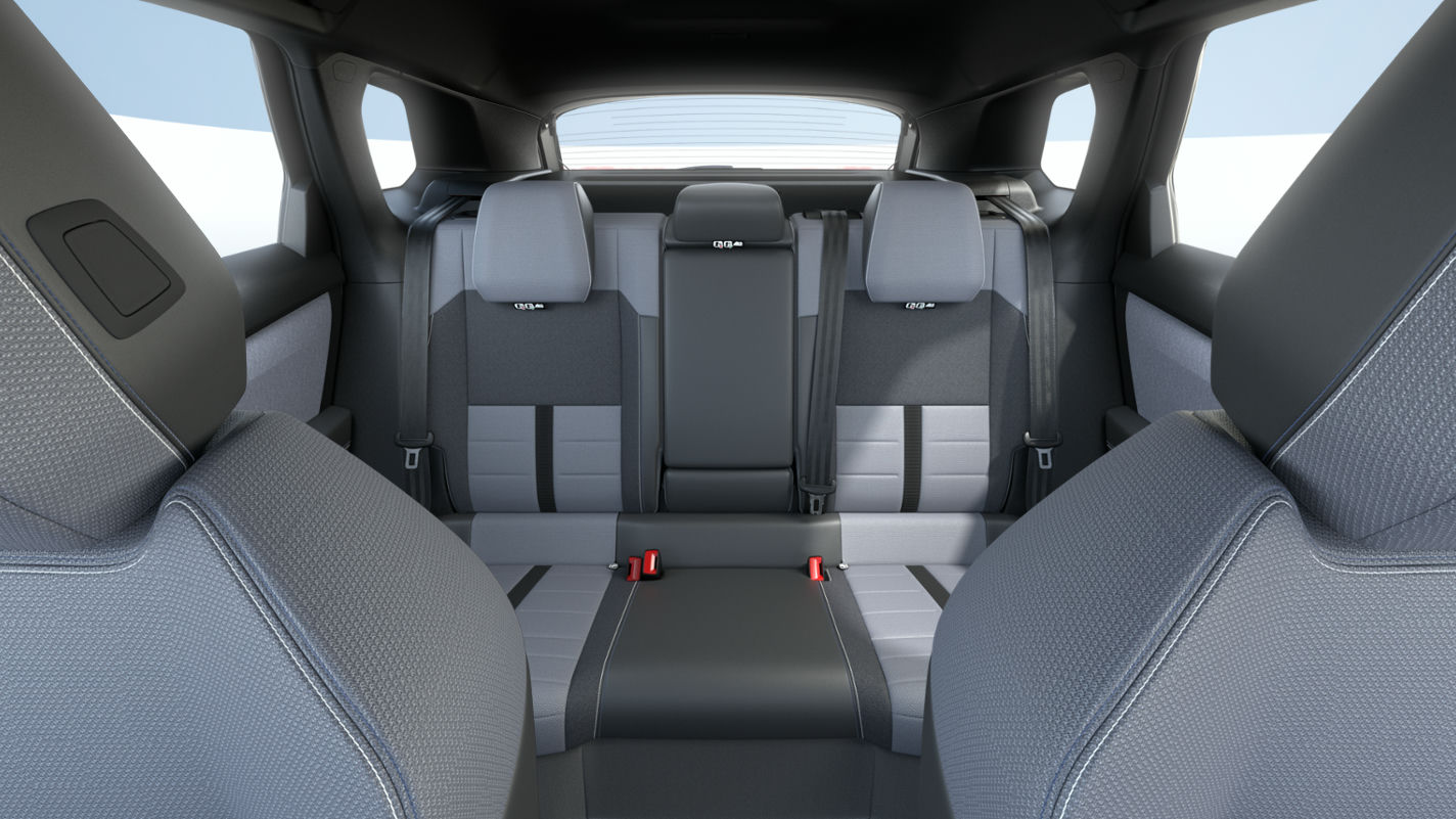 Dökkgrátt tauáklæði, armpúði milli framsæta, armpúði í aftursæti, aftursæti 40/20/40, rafdrifin upphituð framsæti, baksýnisspegill með sjálfvirkri dimmingu, aukahæð í farangursrými.Stjórntæki