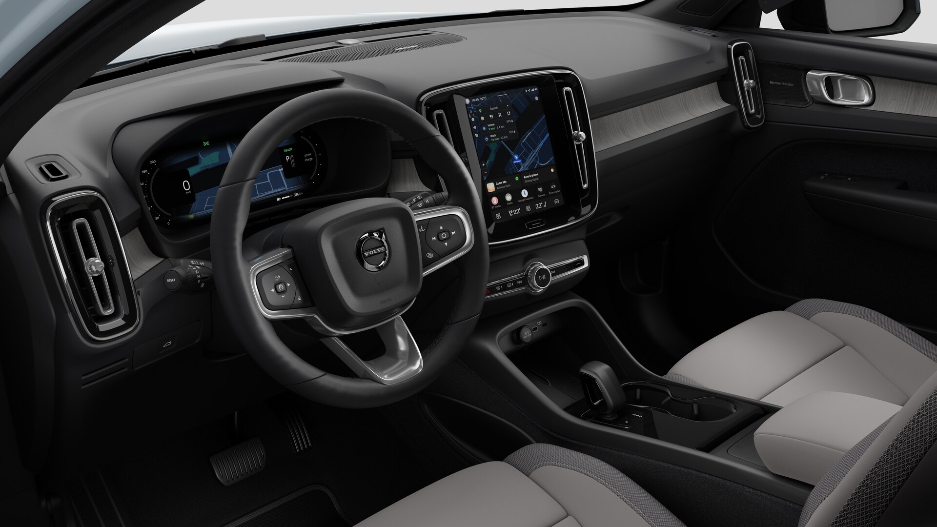Volvo app, Android Auto stýrikerfi með Google Assistant, Google Maps og Google Play, Bluetooth GSM símkerfi, Harman Kardon hljómtæki, USB tengi í armhvílu að framan.Öryggi