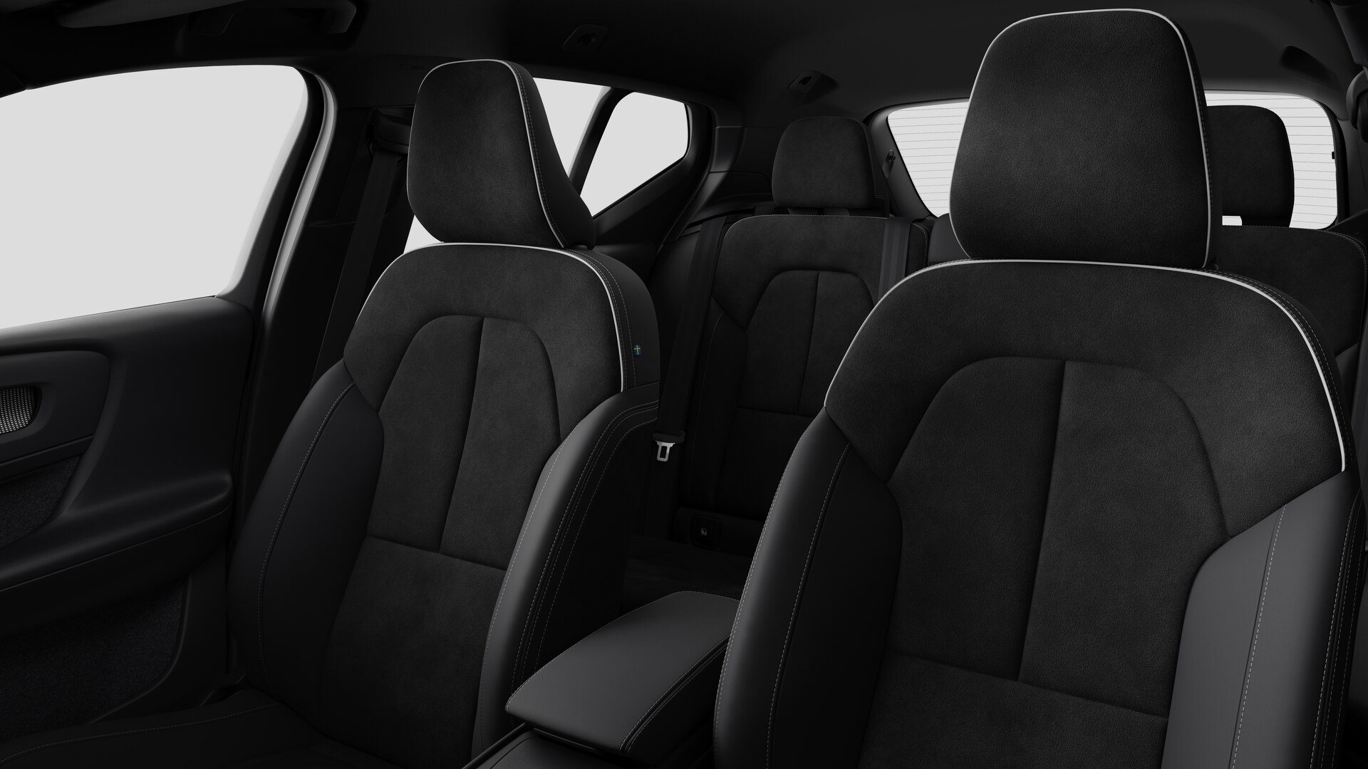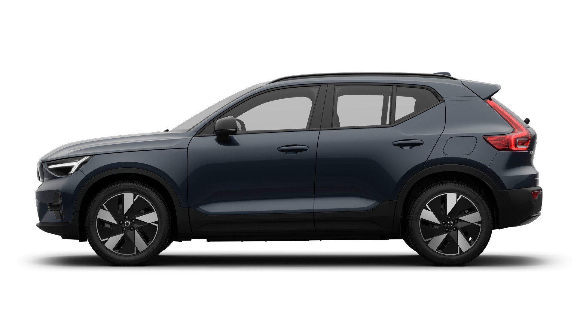 Langbogar, Útispeglar í svörtum lit, „Glossy Black“ stuðarahlífar framan og aftan, LED aðalljós, Upphitanlegt Volvo merki í grilli, 19" 5-Spoke Black Diamond-cut álfelgur.5 ára ábyrgð á Volvo bíl og 8 ára ábyrgð á drifrafhlöðu