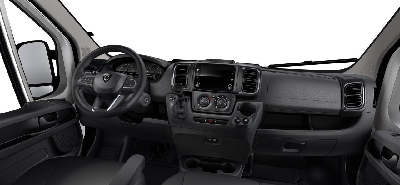Bakkmyndavél 180° Visiopark, Nálægðarskynjarar að aftan, Aðvörun vegna gangandi vegfarenda, ESC stöðugleikakerfi með hleðslugreiningu og hliðarvindsaðstoð yfir 65 km/klst, Sjálfvirk hemlunaraðstoð sem greinir gangandi og hjólandi vegfarendur (AEBS), Rafdrifin handbremsa, Veglínuskynjun, Umferðarskiltalesari, Ökumannsvaki, Hraðastillir og hraðatakmarkari með hraðaráðleggingum, Öryggisloftpúðar fyrir ökumann og farþega, Varadekk, Framdrif með spólvörn og brekkuaðstoð.Utan